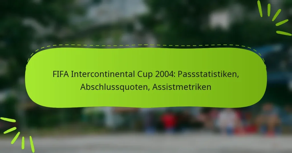 Der FIFA Intercontinental Cup 2004 hob wichtige Passstatistiken hervor, die die taktischen Dynamiken der konkurrierenden Teams offenbarten. Durch die Untersuchung der Gesamtanzahl an Pässen, der Abschlussquoten und der Assist-Metriken erhalten wir wertvolle Einblicke in die Leistung jedes Teams und deren Effektivität bei der Schaffung von Tormöglichkeiten während des Turniers. Key sections in the article: Toggle Was sind die Passstatistiken des FIFA Intercontinental Cup 2004? Gesamtanzahl der Pässe jedes Teams Erfolgreiche Pässe und Abschlussquoten Pässe pro Spieler und Teamdurchschnittswerte Vergleichende Passleistung…